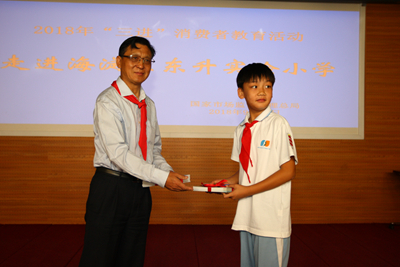 9月28日上午,由市場監(jiān)管總局主辦、中國消費(fèi)品質(zhì)量安全促進(jìn)會承辦的2018年消費(fèi)品質(zhì)量安全知識“進(jìn)社區(qū)、進(jìn)校園、進(jìn)鄉(xiāng)鎮(zhèn)”消費(fèi)者教育活動啟動儀式,在北京市海淀區(qū)東升實(shí)驗(yàn)小學(xué)舉辦。