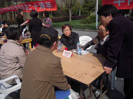 為紀(jì)念《代表法》頒布實(shí)施20周年,長(zhǎng)寧區(qū)華陽(yáng)街道于4月6日上午在中山公園米蘭廣場(chǎng)舉行“代表就在我身邊”主題宣傳服務(wù)活動(dòng),主要涉及《代表法》宣傳、人大代表現(xiàn)場(chǎng)接待、志愿者便民咨詢服務(wù)等方面內(nèi)容。市質(zhì)協(xié)用戶工作委員會(huì)邀請(qǐng)海爾、格力、華氏大藥房、中寶鑒定等企業(yè)的質(zhì)量志愿者參加現(xiàn)場(chǎng)服務(wù)活動(dòng)。為社區(qū)居民提供家電維修、咨詢服務(wù);醫(yī)藥保健知識(shí)咨詢服務(wù);現(xiàn)場(chǎng)珠寶鑒等方面的服務(wù),深受市民的歡迎,。活動(dòng)有4家企業(yè)11名質(zhì)量志愿者參加,共接待各類咨詢、服務(wù)約500人。